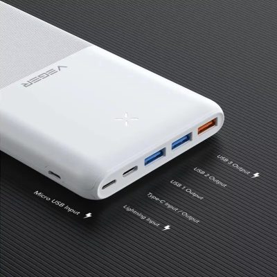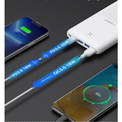 Veger S22 power bank - 20000mAh kapacitás, ultravékony & csúszásmentes kialakítás, 4 eszköz egyidejű töltése, LED töltésjelző - fehér
