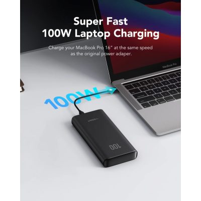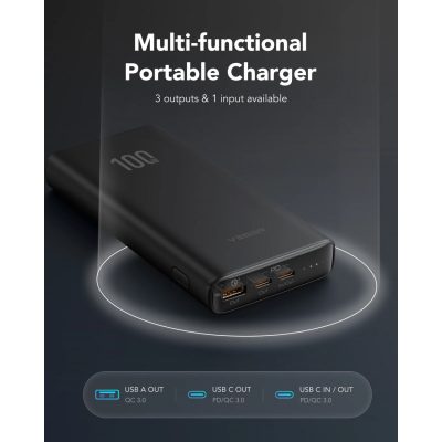 A 100 W-os USB-C porttal, egy 20 W-os USB-C porttal és egy 18 W-os QC3.0 porttal ez a powerbank akár 3 eszközt is képes egyszerre tölteni.