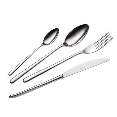Venice desszertkanál, 4 mm, rozsdamentes A Venice egy 18/10 arányú rozsdamentes acélból készült evőeszközgyűjtemény, polírozott felülettel.Az evőeszközök tükörfényezése egy olyan felületkezelési eljárás, amely során speciális hengerek és nagyon finom szemcsés csiszolópaszták használatával elérjük a kívánt fényt.Ez az evőeszköz feltűnő a kifinomult dizájn miatt, amely a fogantyúk végén található enyhe lekerekítéseknek és a szájjal érintkező részek részletkérdésének köszönhető, ami hozzájárul a modell eleganciájához. Ennek az evőeszköznek a jellegzetes eleme a levél alakú kanál és a vágáskor is elhelyezhető állókés.Velence az evőeszközök gyűjteménye, amely 16 elemből álló széles választékban és5 különböző kivitelben kapható :homokfúvott, polírozott PVD ón arany, polírozott PVD rézbronz, polírozott PVD Metal, polírozott .Olasz termék.Mosogatógépben mosható.