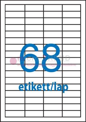 48,5 x 16,9 mm méretű nyomtatható öntapadós etikett A4-es lapon.