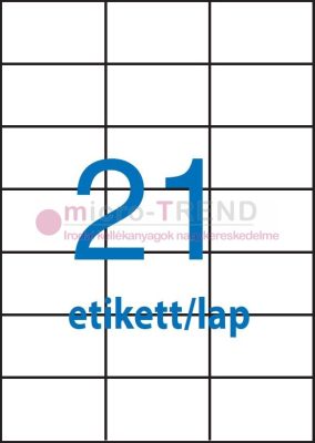 70 x 42,4 mm méretű nyomtatható öntapadós etikett A4-es lapon.