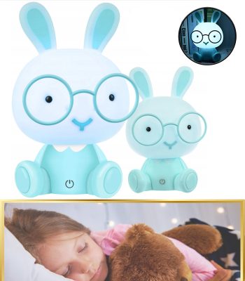 • Világító szemüveges nyuszis éjszakai lámpa kék színben