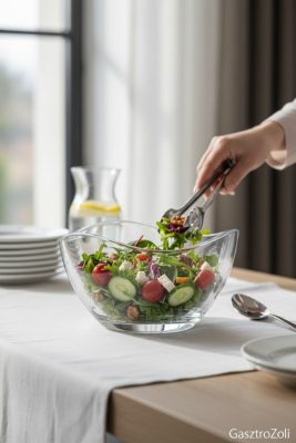 Az üveg tálban jól mutatnak a színes saláták, gyümölcsös desszertek vagy akár előkészített alapanyagok is. Vendéglátásban és otthoni használatban is letisztult, jól kombinálható más edényekkel.