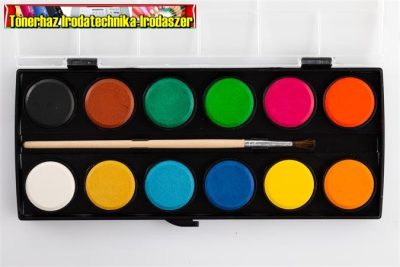 Leírás: élénk színekkel rendelkező vízfesték készlet, fa ecsettel, praktikus műanyag dobozban könnyen oldódik és egyenletesen fed.