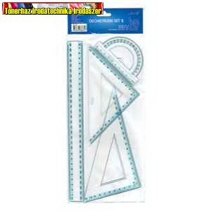 4 db-os készlet tartalma: 30 cm egyenes vonalzó, szögmérő, 45 és 60 fokos hárömszög vonalzó
