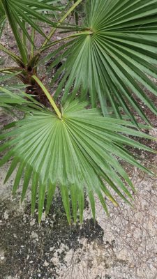 • Növény: látványos megjelenésű legyezőpálma, karcsú törzzsel és nagy, dekoratív levelekkel.