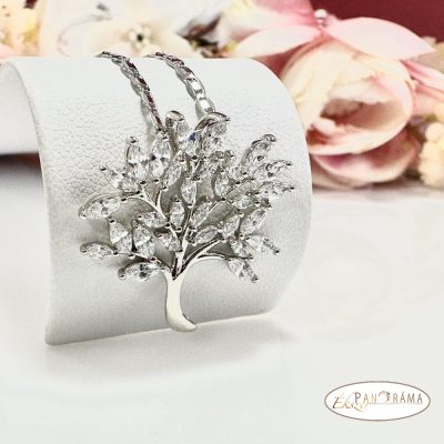 • White Gold Filled életfa medál kristályokkal- Kankalin
