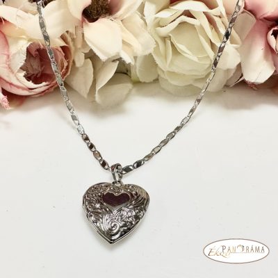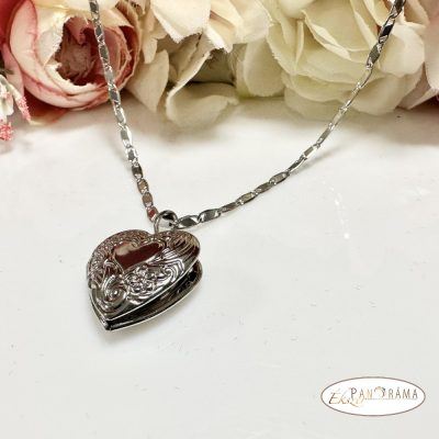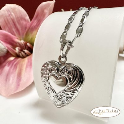 White Gold filled ezüst színű nyaklánc, fényképtartós díszített szív alakú medállal.
