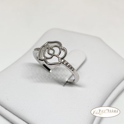 White Gold Filled ezüst színű gyűrű, rózsa fejjel, oldalt apró kristályokkal
