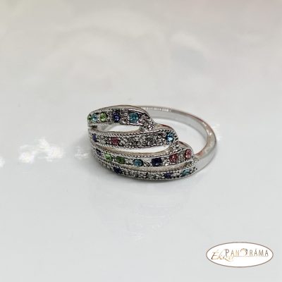 White Gold Filled ezüst színű gyűrű, gyönyörű színes kristályokkal