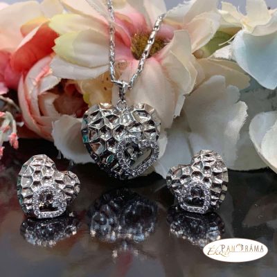 White Gold Filled Medál és beszúrós Fülbevaló szett - Heart