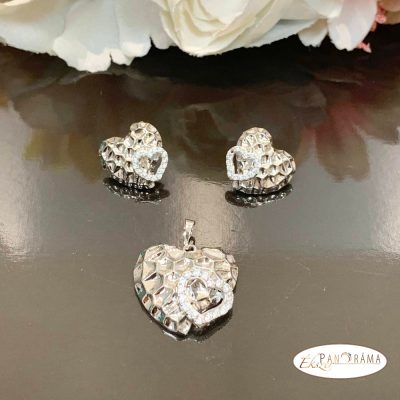 •  White Gold Filled Medál és beszúrós Fülbevaló szett - Heart