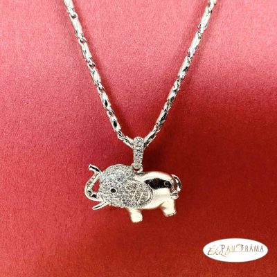 White Gold Filled antiallergén, nikkelmentes ezüst színű medálos nyaklánc kristályos elefánt díszítéssel.