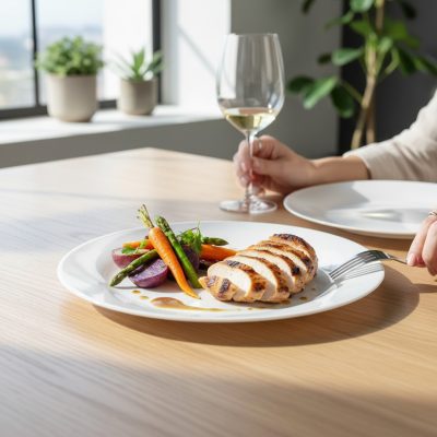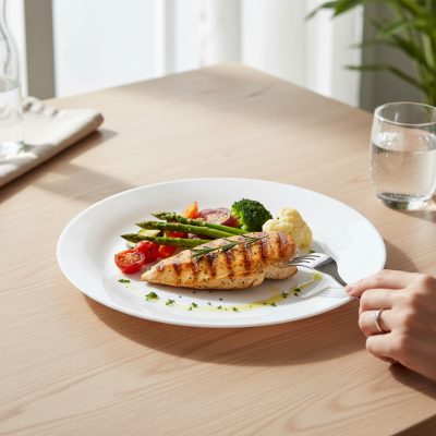 A 26 cm-es méret ideális például egy grillezett csirkemell körettel való tálalásához, ahol az adag és az elrendezés is harmonikus marad.