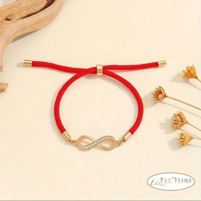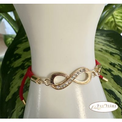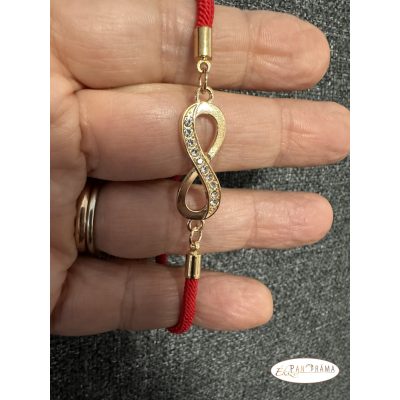 • Zsinóros karkötő kristályos végtelen díszítéssel, csúszózárral- piros, arannyal