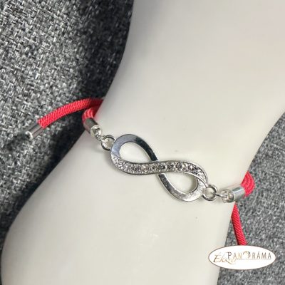 Zsinóros karkötő kristályos végtelen díszítéssel, csúszózárral -piros, ezüsttel