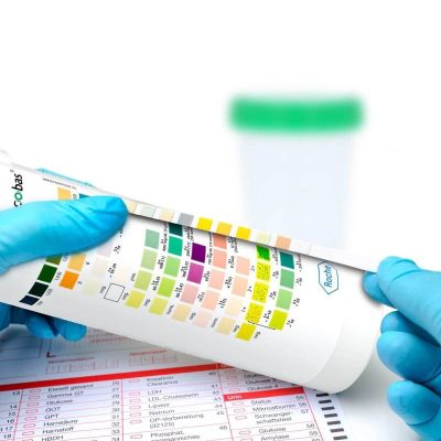 A Roche cég Combur 10 Test vizelet tesztcsíkjai 10 vizeletparaméter meghatározására szolgálnak. Speciális kialakításuk megakadályozza a különböző tesztmezők reagenseinek keveredését, emellett a reakciómezők egyértelmű színváltozása támogatja az eredmény egyszerű és pontos leolvasását.