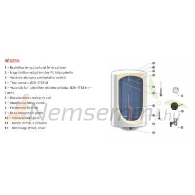 • 100 literes SunSystem MB típusú melegvíz tároló bojler beépített 3kW fűtőbetéttel. Használati melegvíz tároló zománcozott tartály HMV
