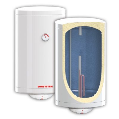 • 100 literes SunSystem MB típusú melegvíz tároló villanybojler beépített 2,5 kW fűtőbetéttel. Használati melegvíz tároló zománcozott tartály HMV