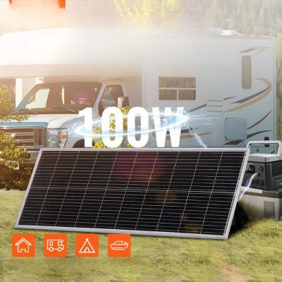 • 100W monokristályos napelem készlet 12V töltésvezérlővel lakóautóhoz és szigetüzemű rendszerekhez