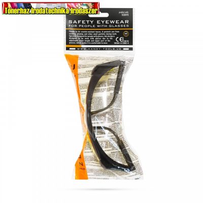 A karcolódásmentes lencséknek köszönhetően munkavégzés közben védelmet nyújt csiszolás, gyalulás és egyéb munkák során keletkező apró szemcsék ellen. Ez a kivitel kifejezetten szemüveges emberek részére készült, az állítható szárhossznak és a szemüveg felső részének kiképzése miatt, kényelmesen hordható látást segítő szemüveggel együtt, de akár anélkül is használható.