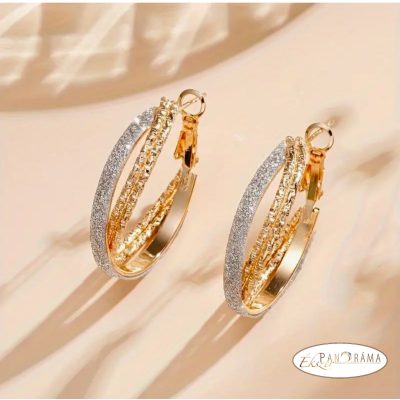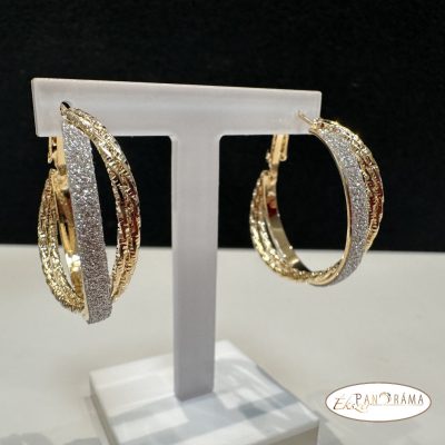 14K arany színű, nikkel és ólom mentes karika fülbevaló, fehér arany díszítéssel.