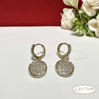 14K Gold Filled anti-allergén, nikkel és ólom mentes, arany színű, lógós fülbevaló, apró kristályos díszítéssel