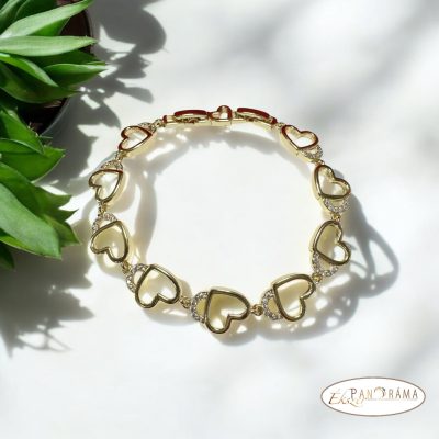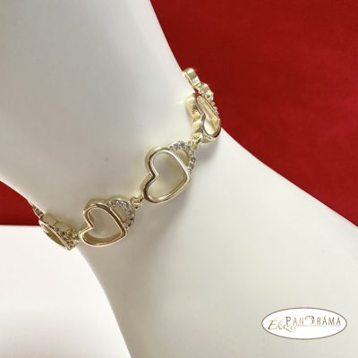 14 K Gold Filled anti- allergén, apró kristályos, szív motívumos karkötő, dupla kapcsolóval