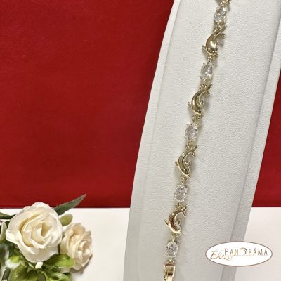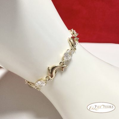14 K Gold Filled anti- allergén, apró kristályos, delfines karkötő, dupla kapcsolóval
