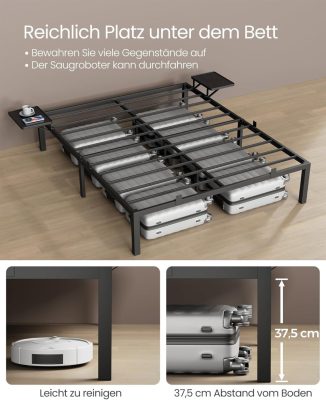 [Tágas tárolóhely az ágy alatt] A padló és a támasztórúd közötti 41 cm-es távolságnak köszönhetően könnyedén elhelyezhetsz tárolódobozokat az ágy alatt. A takarítás miatt sem kell aggódnod, hiszen a robotporszívó gond nélkül átfér alatta.