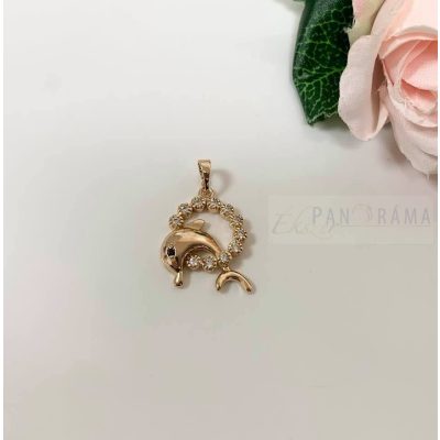 Arany színű medál,közepében egy delfin egy csillogó kristály karikával. Kifinomult, egyben mutatós darab.