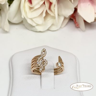 18 K Gold Filled antiallergén gyűrű, kristályos violinkulcs és hangjegy fejjel!