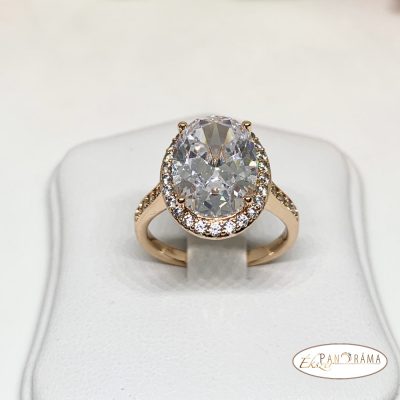 18 K Gold Filled antiallergén gyűrű, egy nagy kristállyal a közepén, körben apró kristályokkal díszítve!