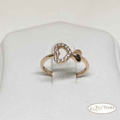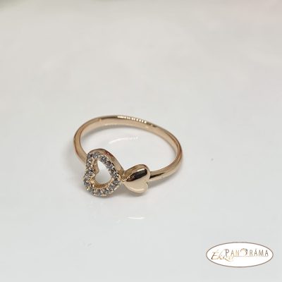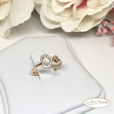 18 K Gold Filled antiallergén gyerek méretű gyűrű, széles, 1 arany és egy kristályos szivecskével díszítve!