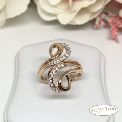 18 K Gold Filled antiallergén gyűrű, széles, hosszított fejjel,kristályokkal díszítve!