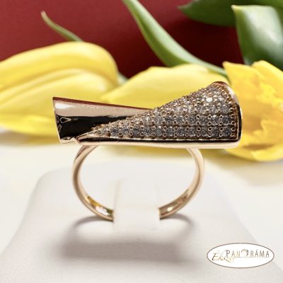 18 K Gold Filled antiallergén gyűrű, feje 23 mm széles, kristályokkal díszítve!