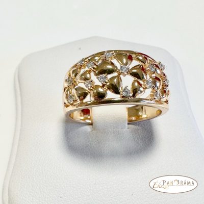 18 K Gold Filled antiallergén gyűrű, kis virág motívumokkal és kristályokkal díszítve!
