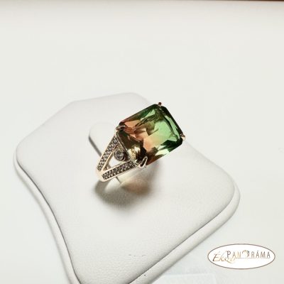 18 K Gold Filled antiallergén gyűrű, zöld színjátszó kristállyal díszítve!