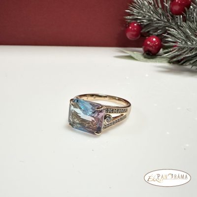 18 K Gold Filled antiallergén gyűrű, kék- rózsaszín színjátszó kristállyaldíszítve!