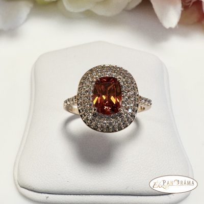 18 K Gold Filled antiallergén gyűrű, oválos nagyobb fejű, gyönyörű tűkristályok, közepén egy piros kristállyal díszítve!