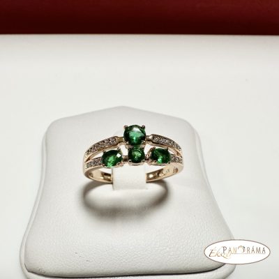 18 K Gold Filled antiallergén gyűrű, zöld kristályokkal díszítve!