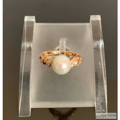 Elegáns 18 K Gold Filled arany színű, fehér gyönggyel kirakott gyűrű.