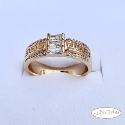 18 K Gold Filled antiallergén gyűrű,görög mintával és kristályokkal díszítve!