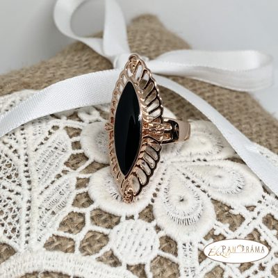 18 K Gold Filled antiallergén hosszú fejű pecsétgyűrű, közepén fekete kővel díszített!