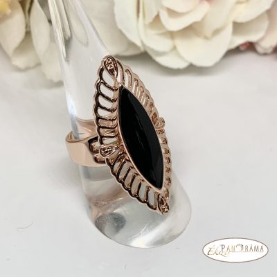 18 K Gold Filled antiallergén hosszú fejű pecsétgyűrű, közepén fekete kővel díszített!