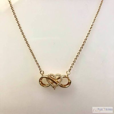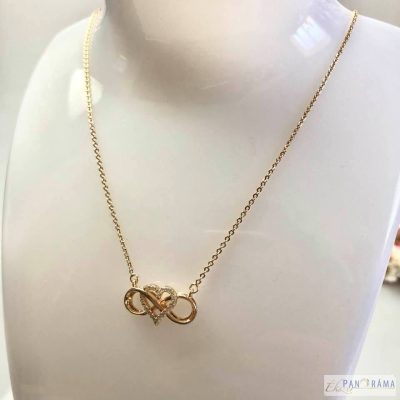 Arany színű, elegáns 18 K Gold Filled nyaklánc egy szív, és egy végtelent szimbolizáló medállal.