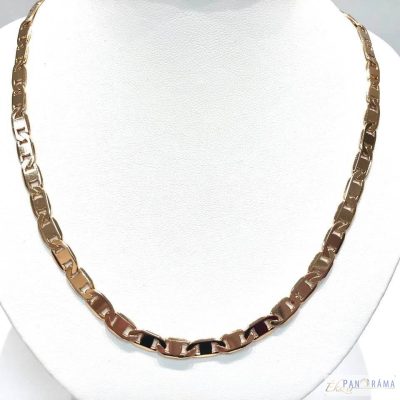 Minőségi ékszer, arany színű láncszemei különleges módon kapcsolódnak egymásba. Viselőjének stílusosabb megjelenést ad.