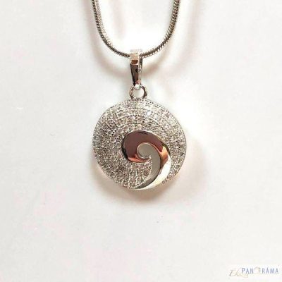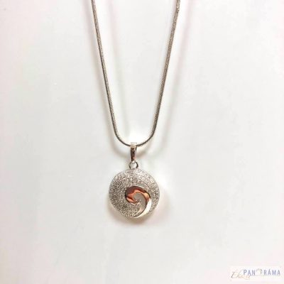 Visszafogottan elegáns ezüst színű nyaklánc, melyet fehér tűkristályokkal díszített medál varázsol különlegessé.