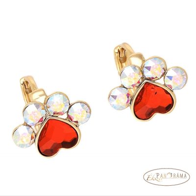 • 18K Gold Filled, antiallergén fülbevaló eredeti kristályokkal - mancs red