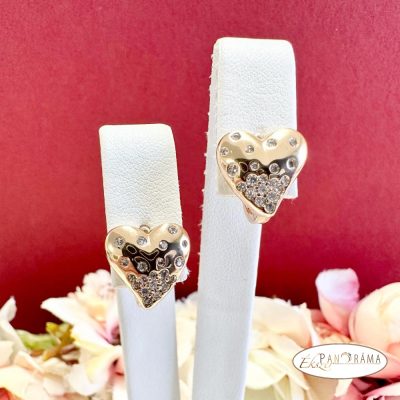 18K Gold Filled anti-allergén, nikkel és ólom mentes arany színű kapcsos, kristályos szív fülbevaló.